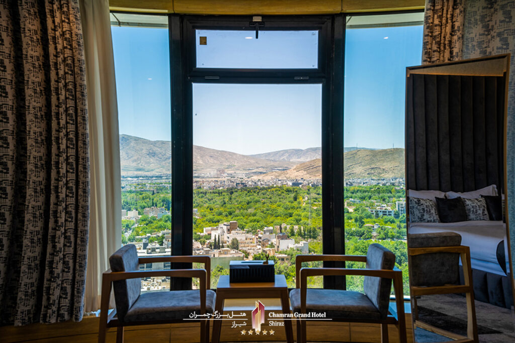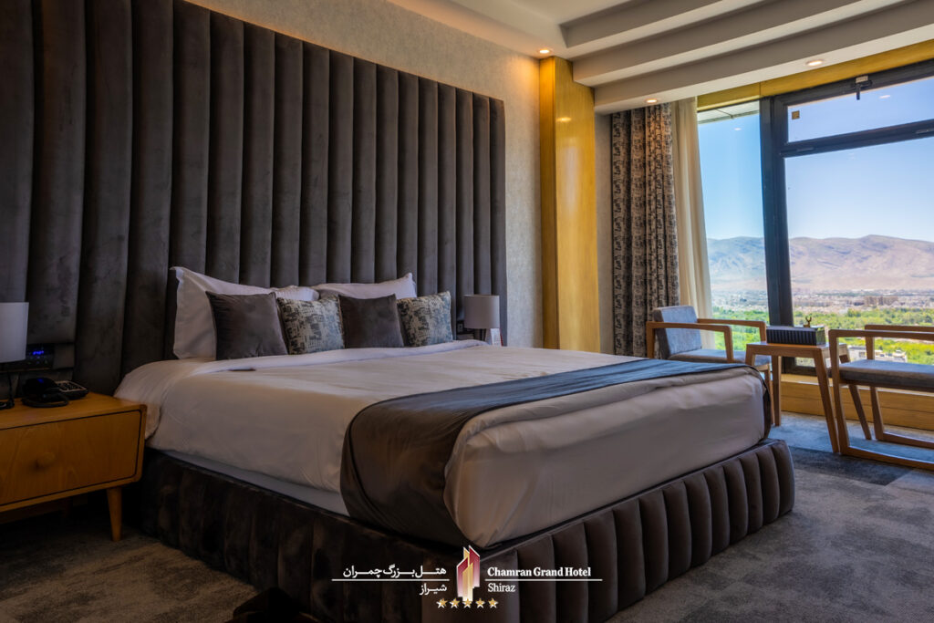 اتاقهای دو تخته استاندارد هتل بزرگ چمران با طراحی مدرن، فضایی آرام و چشماندازی بینظیر از شهر شیراز، اقامتی دلپذیر و خاطرهانگیز را برای مهمانان فراهم میکنند.